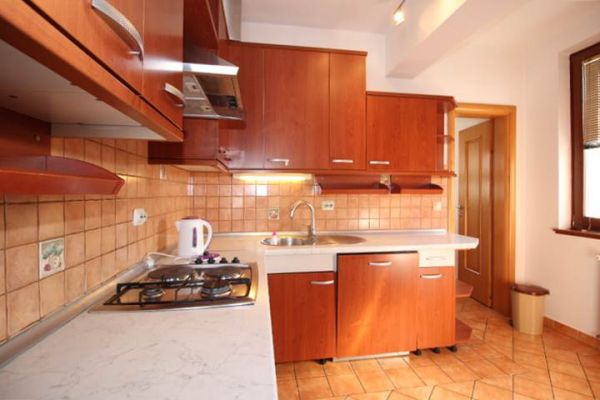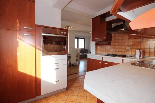 House comprises ground floor and extra 2 floors.At ground floor there is big open space(living room and dining area) with kitchen and exit to big yard from one side and to balcony from other. Living room has beautiful fireplace and from balcony extraordinary view at city.