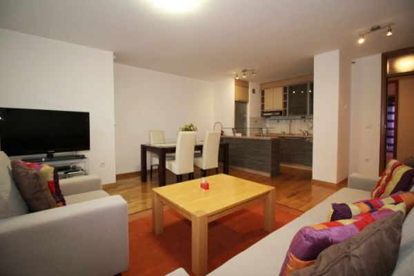 Apartment comprises entrance hall with wardrobes,living room with dining area and kitchen.one bedroom, second bedroom with exit to private terrace(30 square meters),bathroom,toilet,pantry.