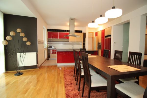 Entrance hall of the apartment is luxurious with space and lots of wardrobes.From there you can enter to large living room, dining room and kitchen.