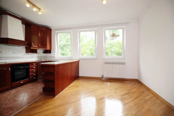 The apartment comprises living room with terrace, dining room with kitchen , master bedroom with bathroom,three additional bedrooms(one with balcony)big bathroom, and spacious entrance hall and 2 wardrobes rooms . There is an underground garage with one parking place . Additional storage/pantry.