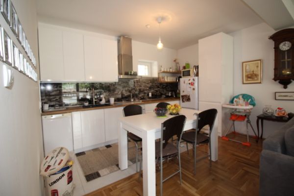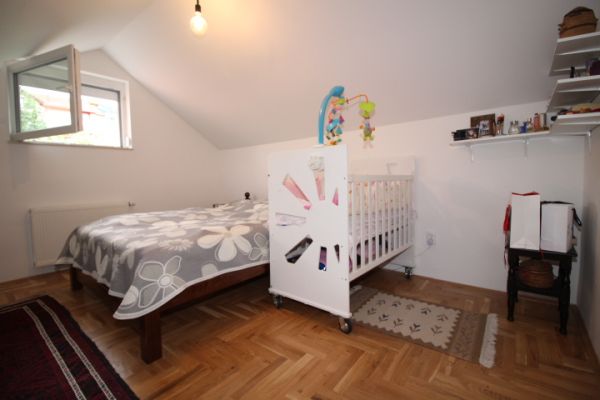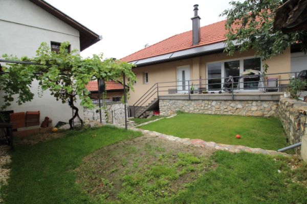 House comprises 3 bedrooms, living room with fireplace , dining room, modern kitchen.From living room exit to terrace and from there to garden. On this level are also 2 bedrooms and bathroom.