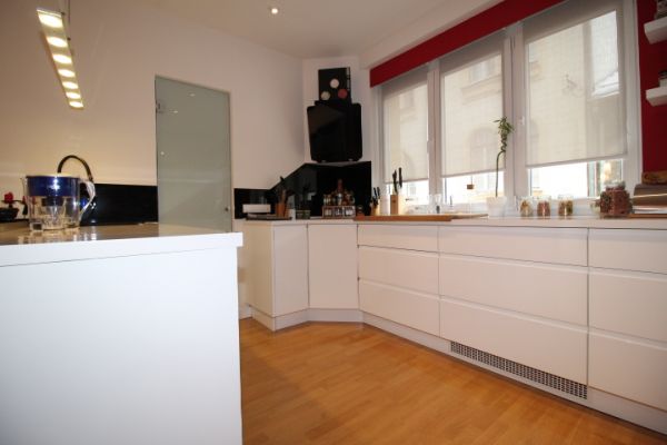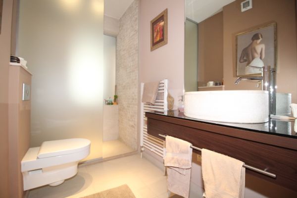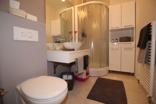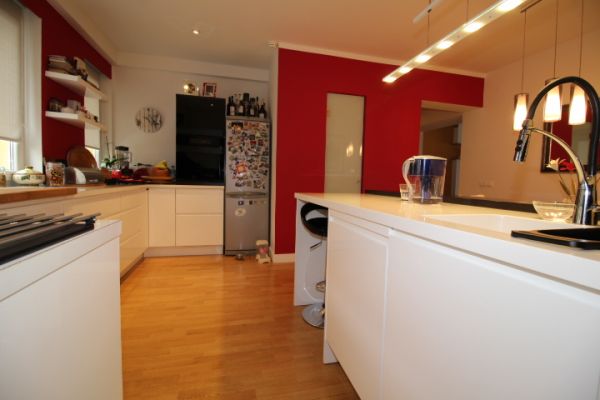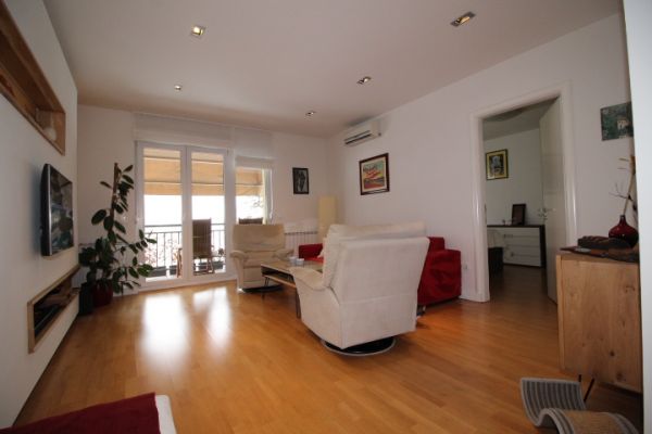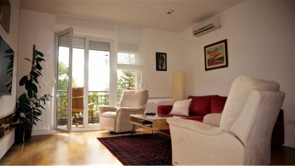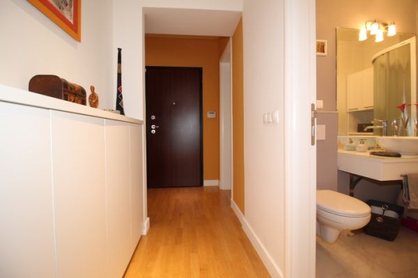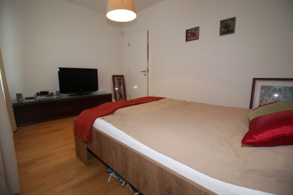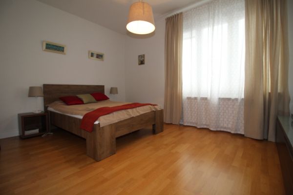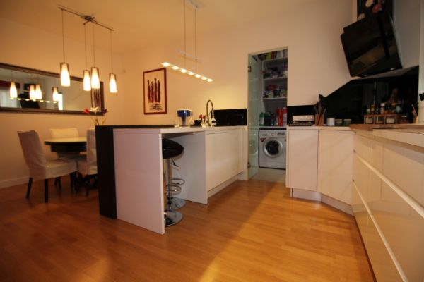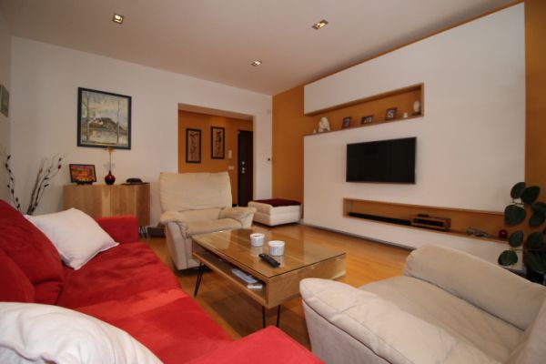 Apartment comprises living room with balcony, dining area with modern kitchen and pantry/boiler/laundry room .There are 3 bedrooms(one has its own bathroom),hallway with in-build wardrobe and another bathroom .Apartment has garage for one car and parking place in front garage .