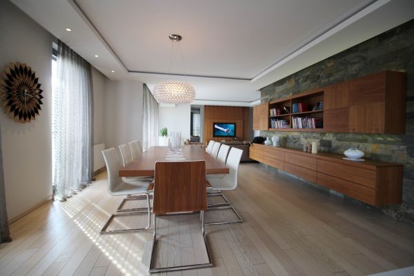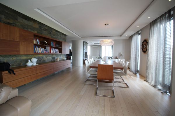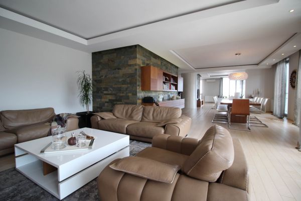 The apartment has 191 square meters and consists of a kitchen, dining room and a large living room which is divided into two sitting rooms, all in one unit of open type. The apartment has 4 bedrooms, two bathrooms and a washroom.