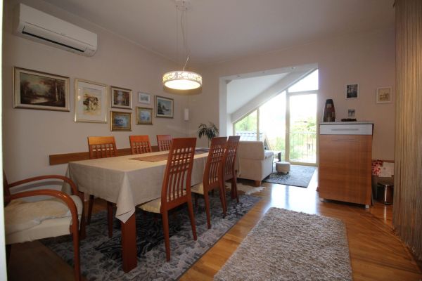 The upper part consists of a living room, kitchen, bedrooms, two childrens rooms and a bathroom,all in size of 70m2.