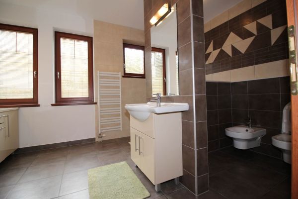 House comprises living room with dining area and kitchen,3 bedrooms with open attic space that can be used as additional bedroom for something by your wishes and needs,2 bathroom,2 toilets , laundry room,garage.In front of the house there is beautiful garden with flowers.