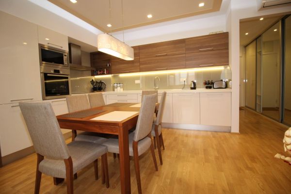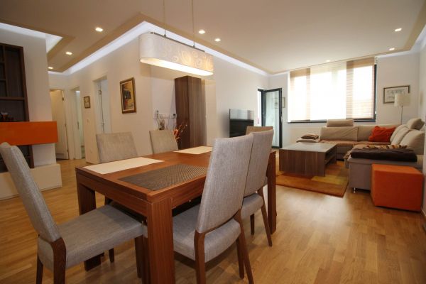 Also, this building its near Wilsonovo setaliste, your ideal place for relaxation. Apartment consists of open living room, dinning room and kitchen and exit to in glass balcony, 2 bedrooms,one bathroom,one toilette,pantry.