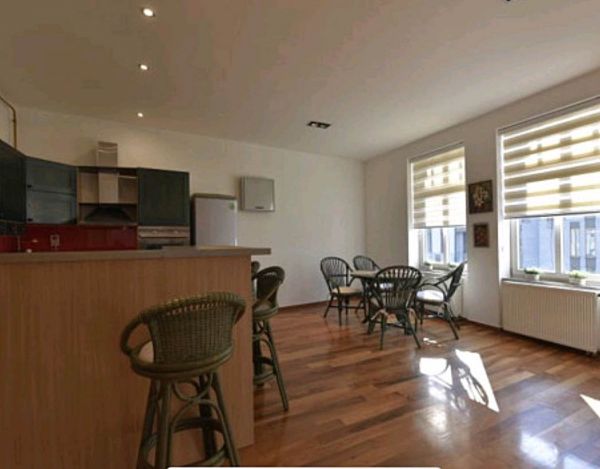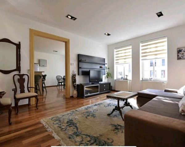 For rented a spacious, renovated two bedroom apartment measuring 96 square meters, located on the second floor of a residential building, in the center of Sarajevo, close to the SCC and the Parliament of BiH. The building in which the apartment is located is an Austro-Hungarian building, the apartment has been renovated and is characterized by high ceilings and large glass surfaces, a classic and authentic arrangement of rooms for Austro-Hungarian construction, consisting of: two spacious bedrooms, large kitchen with dining room, living room (room-through-room system) of one bathroom, toilette and entrance hall. When renovating, high-quality wooden joinery is installed, which significantly increases energy efficiency and sound insulation of the space. The apartment has central gas heating system
