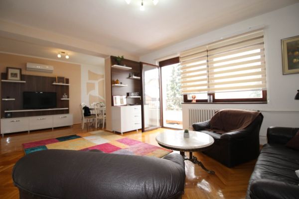 House in Breka area with outside space(2 balconies ,gazebo and green part of garden). Living room with balcony and dining part , kitchen and storage,bathroom. On upper levels there are master bedroom with balcony and closet room ,and 1 additional bedroom and 1 bathroom. Level up are 2 bedrooms and open space for attic.