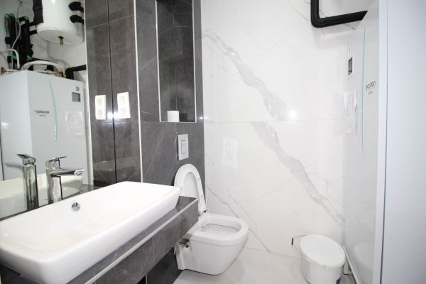 Apartment comprises 116 square meters,open living room with dining room and kitchen,terrace,master bedroom with walk in closet and bathroom,2 additional bedrooms,another bathroom,toilette with utility room,to be lots of inbuilt closets,pantry,storage.