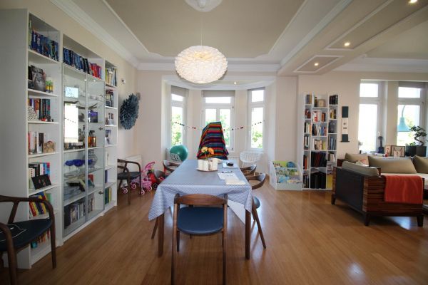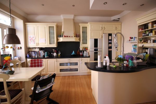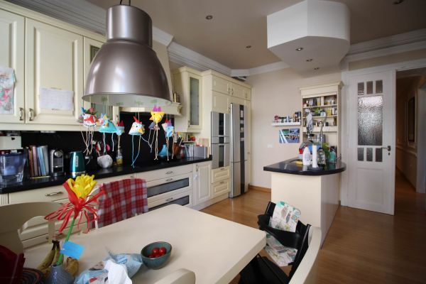 Apartment comprises entrance hall,boiler and pantry room,big open ,bright living room(fireplace) with dining area and semi open beautiful kitchen. On left are 3 bedrooms,2 bathrooms, on right is 1 main bedroom with its own bathroom and connection to another room(nursery,study room,hobby room)and small balcony.