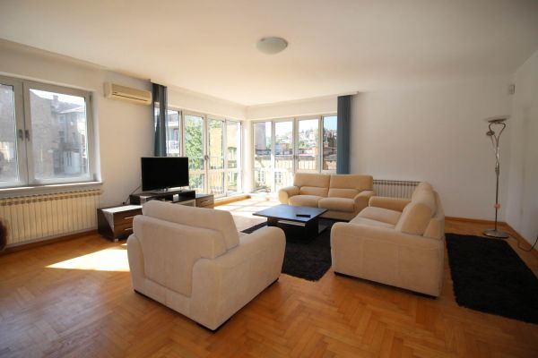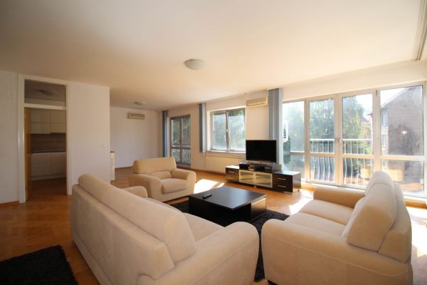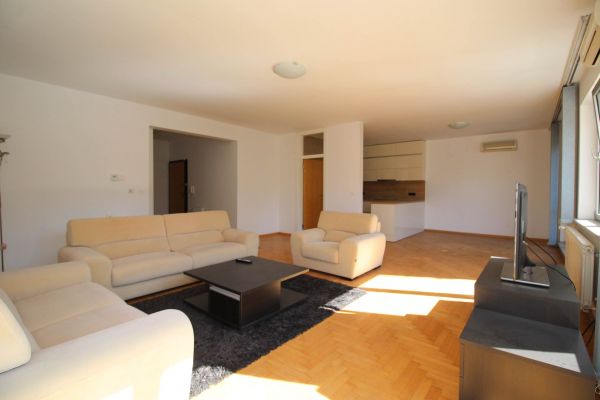 This apartment has 150 sqm and comprises big bright living room and dining area with kitchen,3 bedrooms,one open glassed room that could be used as study (hobby) room /office space/ library,3 bathrooms and entrance hall .