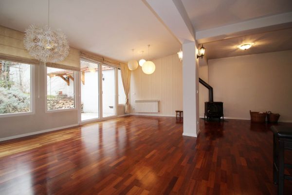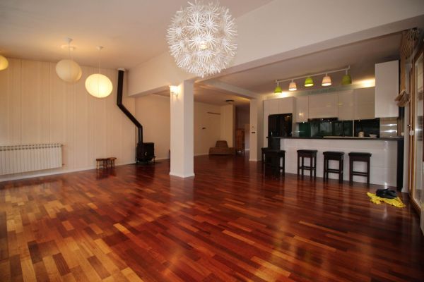 Same level as garage is big open space with own entrance,toilette and small kitchen,storrage . That level is with internal staircase connected with ground level of house or can be totally separated unite.