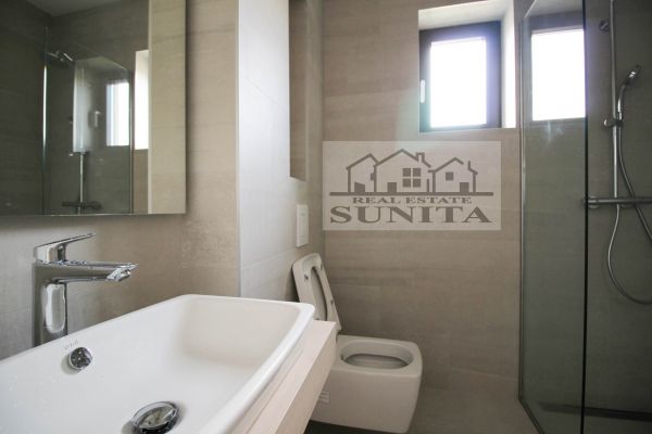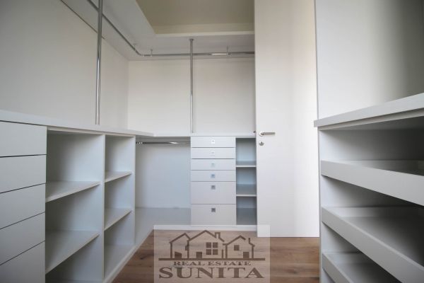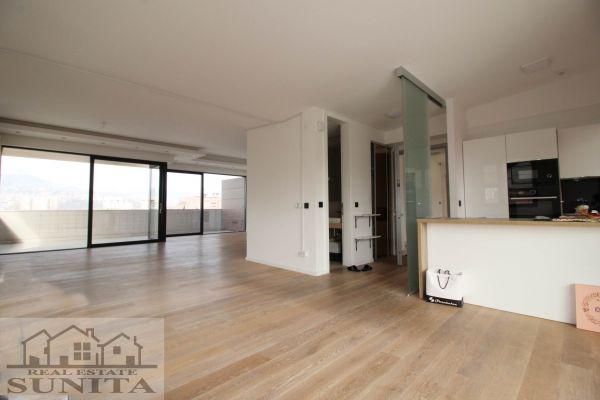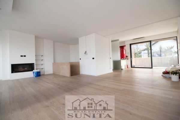 Modern top quality building and apartment in peaceful,secured area. Apartment have 185 square meters,plus 40 square meters of outside places-3 terraces). Comprises large open kitchen (terrace),dining area and living room area with fireplace and big terrace,toilet. Other level comprises private part for master bedroom with large bathroom with bathtub,shower ,toilette and sauna.Also there is closet room.Another 3 bedrooms with terrace,extra bathroom and long corridor with closets. Underneath staircase there is additional space.