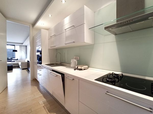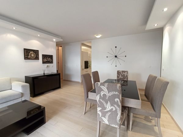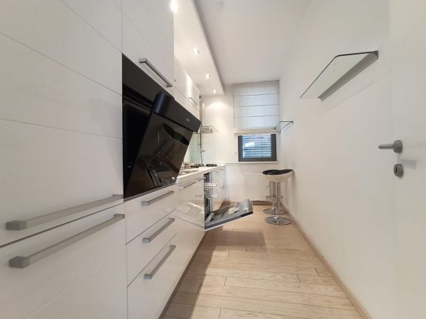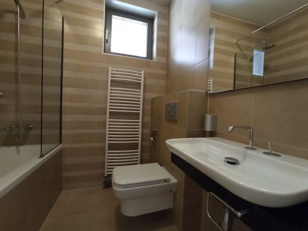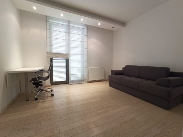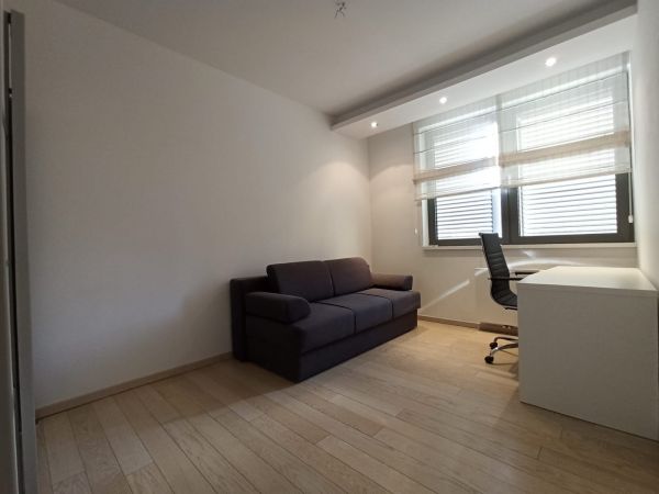 Central heating, air conditioning, parquet floors, high-quality multi-chamber PVC exterior joinery, modern wooden interior. Alarm, video surveillance, elevator from the garage, 24-hour physical security of the building, reception with staff. The apartment is bright and airy, with two-sided orientation. It is being rented fully furnished.