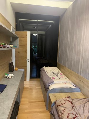 Modern and luxury, 100 m2, apartment, situated in Sarajevo, in between Marijin Dvor and beginning of Grbavica area. An apartment is completely renovated, and comprises 2 bedrooms, very spacious living room (cca 60 m2) with dining room and kitchen, bathroom and hallway. The apartment is fully furnished and equiped with modern furniture, ambiental lights, fireplace, LCD TV, cable TV connection and internet connection, as well as with double central heating system (gas + electricity). Fireplace.