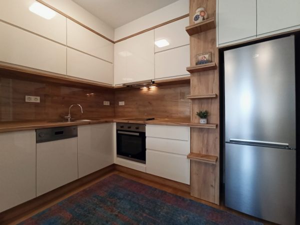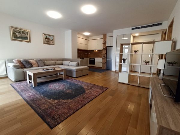 Apartment comprises 70 square meters,open living room dining room and kitchen, in glassed balcony, bedroom and bathroom,toilet ,parking place in underground ,secured garage, storage.
