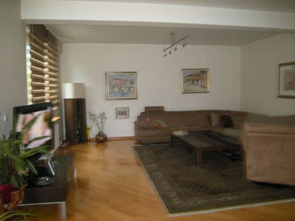 Size is 105 square meters and comprises entrance hall,living room , dining area with modern kitchen with beautifull view at center of Sarajevo, 2 bedroom, 1 large bathroom,1 toilet,closed balcony and wardrobe room