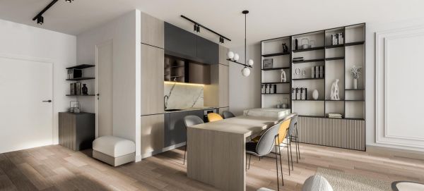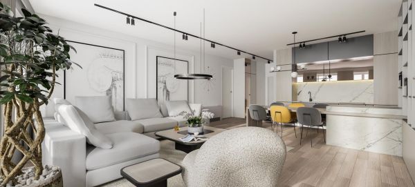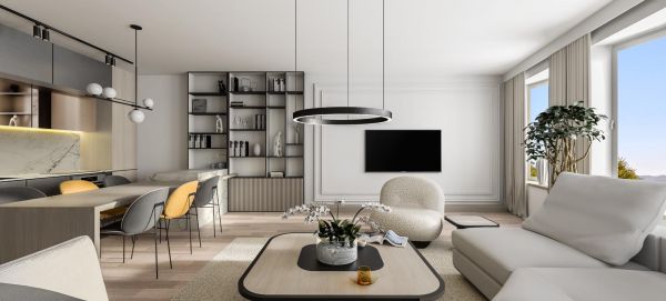Open space living and dining area with kitchen