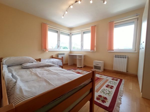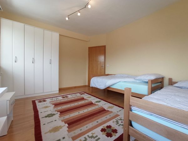 Ground floor -forth bedroom(guest apartment),toilette. Big garage for 2 cars,laundry room,small back terrace.