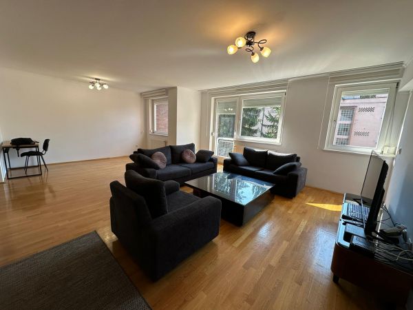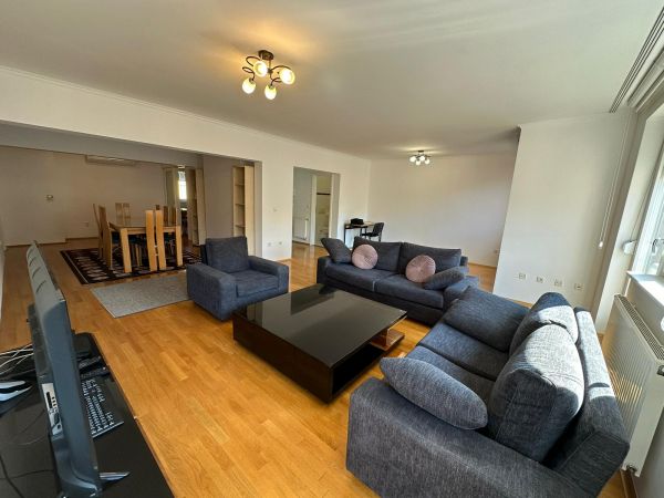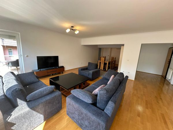 A modern and renovated apartment of 115 square meters is for rent, located in the area of Điđikovac, in one of the most beautiful parts of Sarajevo. The apartment is located in a very quiet location, but again just a few steps from the city center, and contains: a living room with an exit to the balcony, a spacious dining room, a modern fully equipped kitchen, three bedrooms(master with same balcony as living room ) a bathroom, a toilet, a corridor, an entrance hall,laundry room. It is characterized by a southeast orientation that provides plenty of natural light throughout the day.